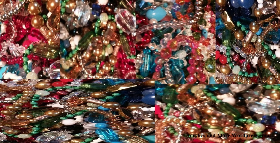 Light green acrylic beads with crystal beads separating for texture, and at the back of the neck for lengt h and ease of working the clasp. The earrings generally come with hooks, but can be clips if desired.